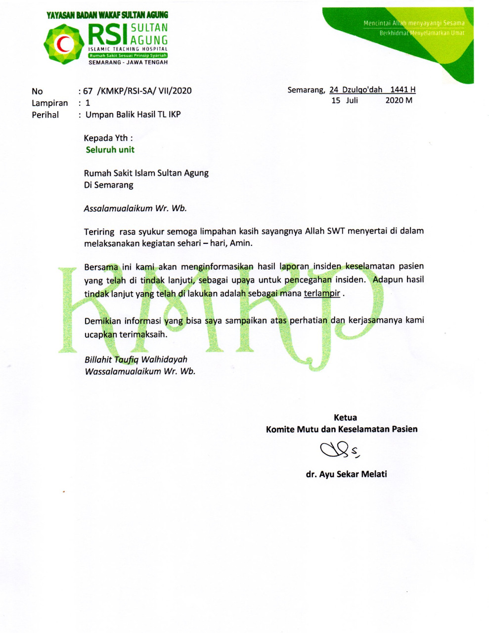 JADWAL JAGA DOKTER ANESTESI RS ISLAM SULTAN AGUNG SEMARANG BULAN JULI 2020