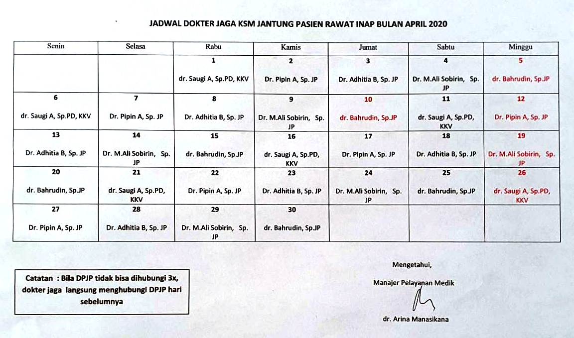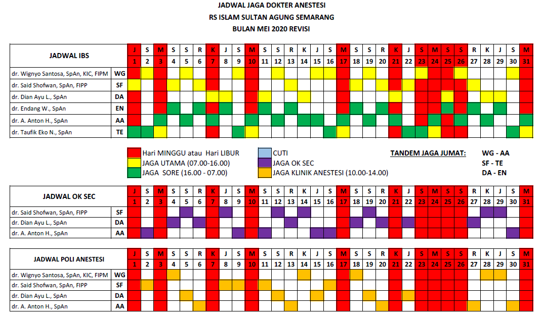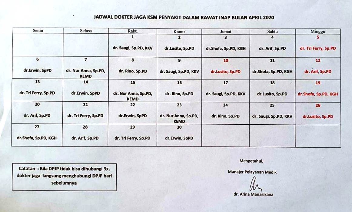 Jadwal jaga dokter anestesi April 2020