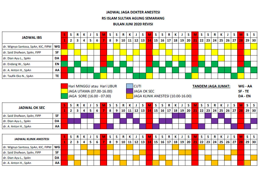 Jadwal Anastesi Bulan Juni 2020