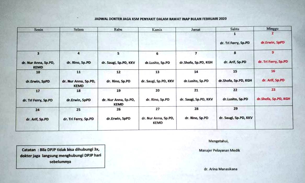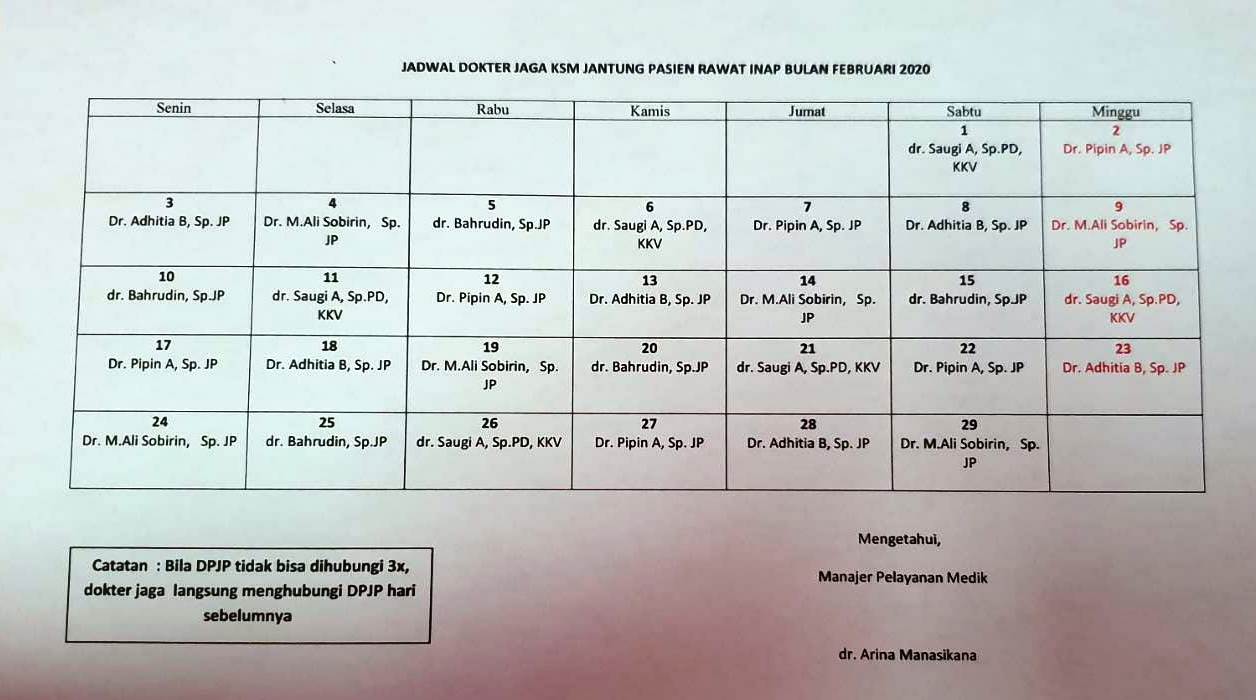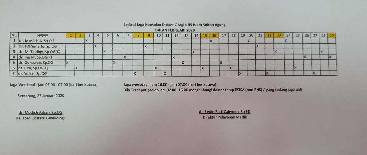 Jadwal Jaga Dokter Spesialis Anestesi Januari 2020