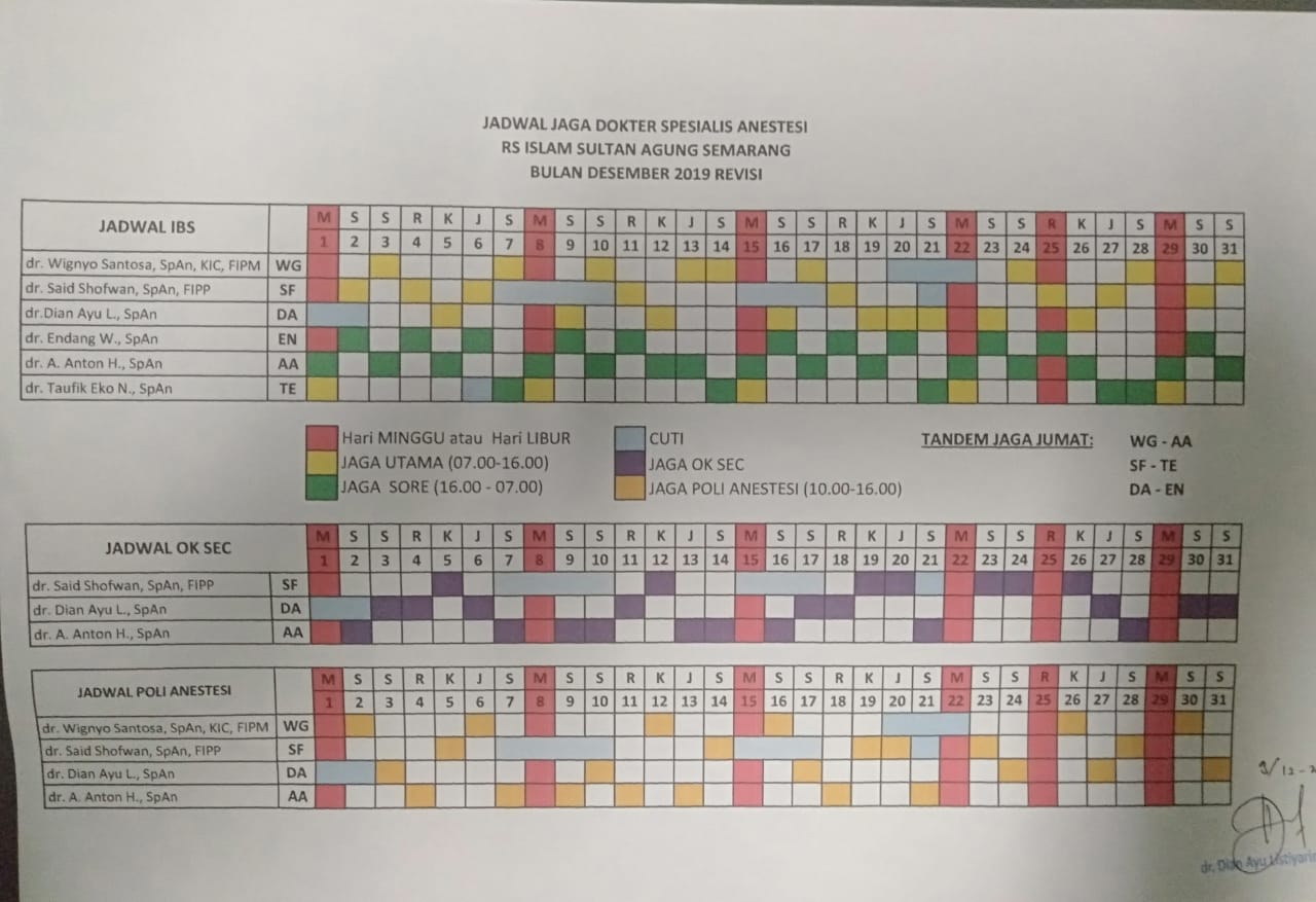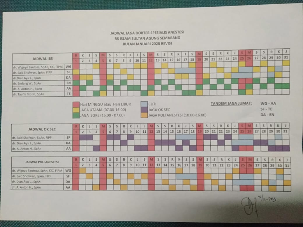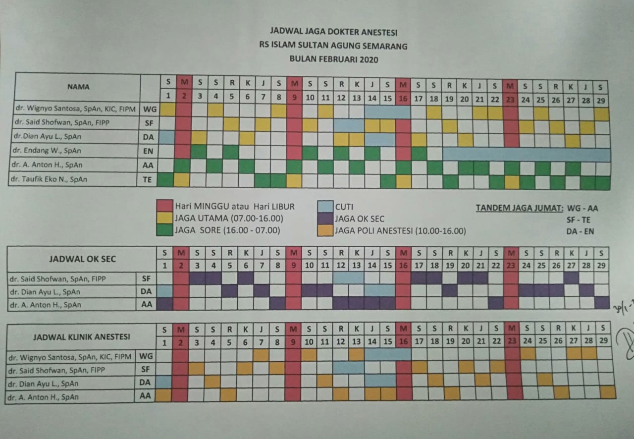 Jadwal Jaga Dokter Anestesi Januari 2020