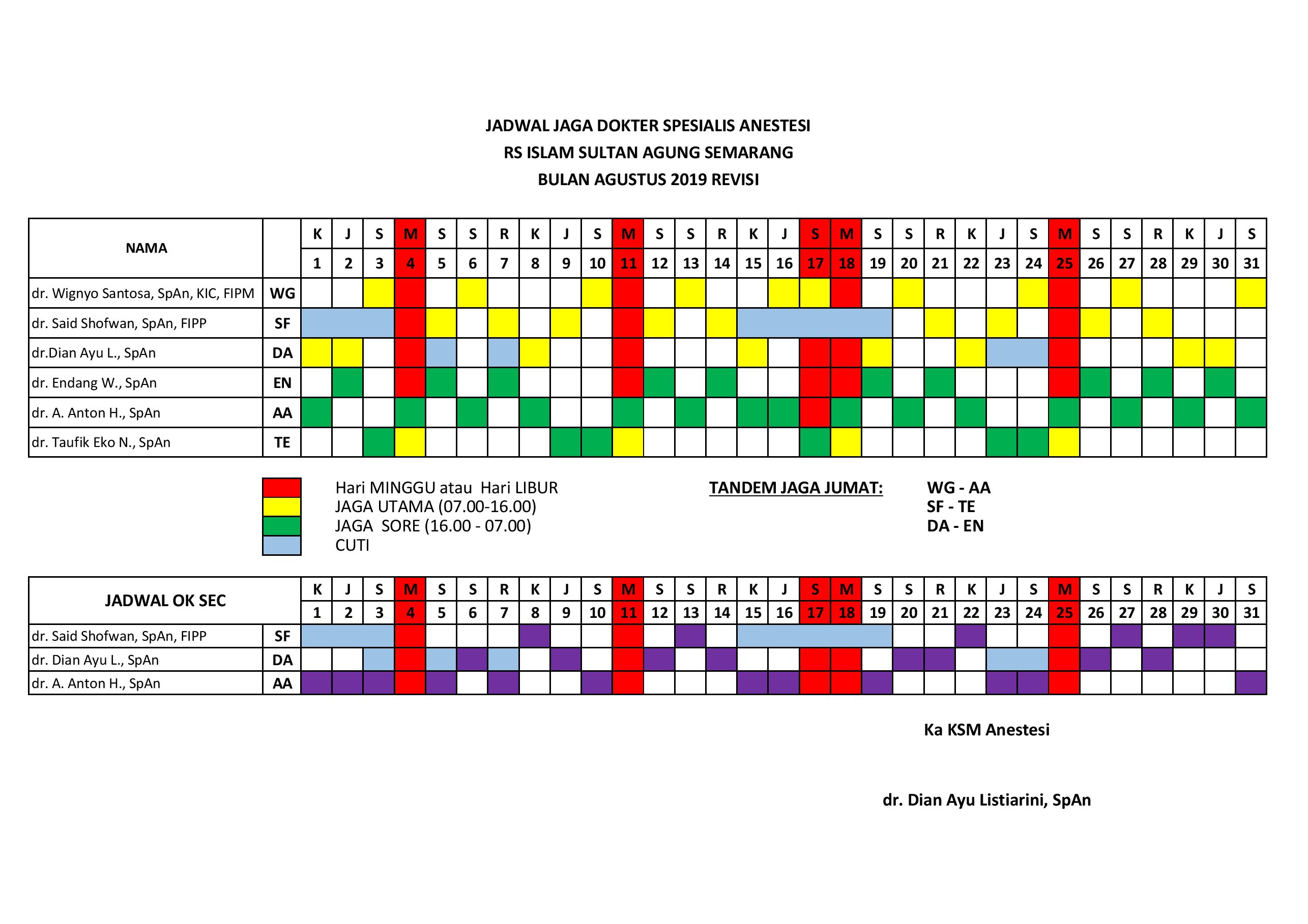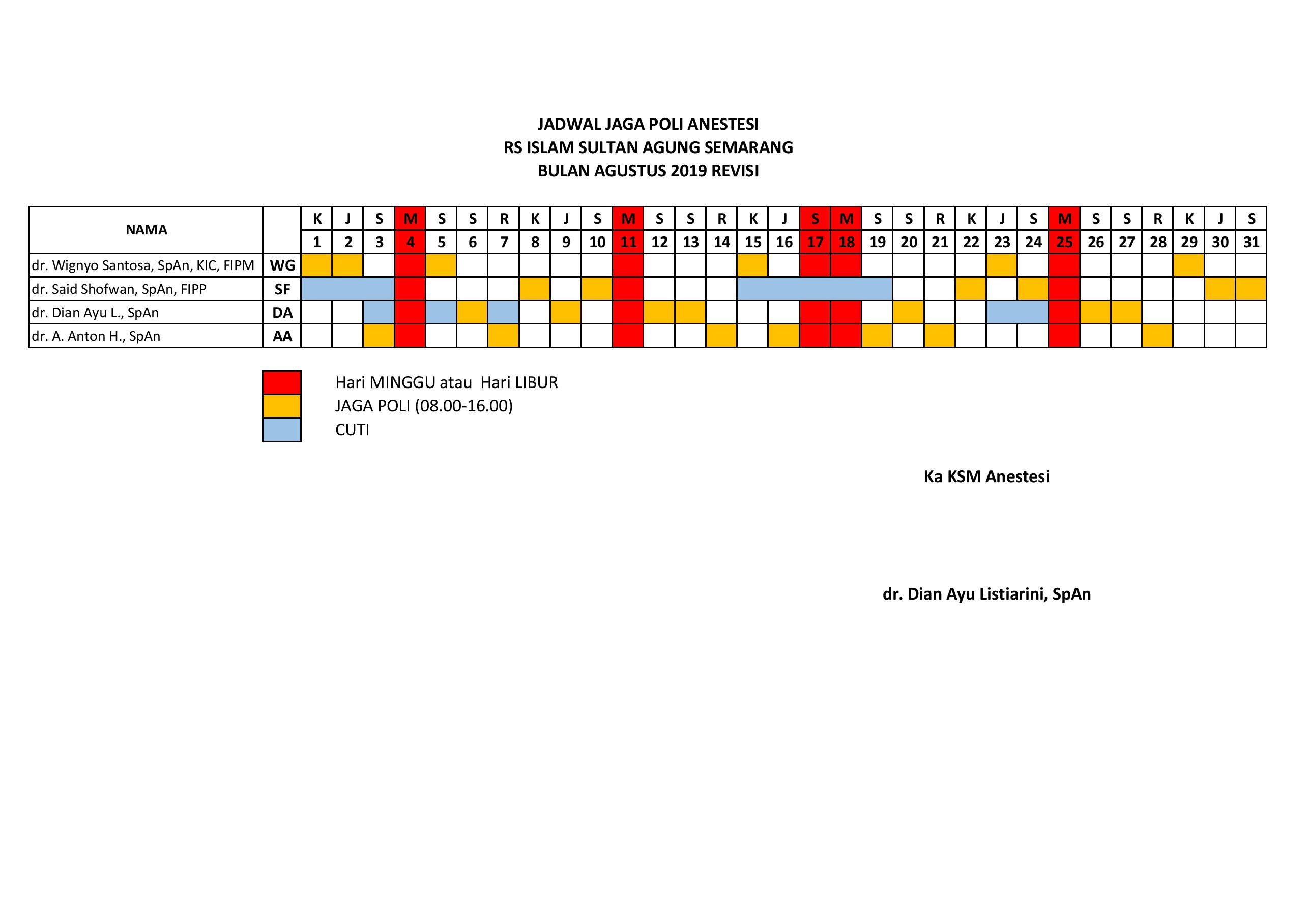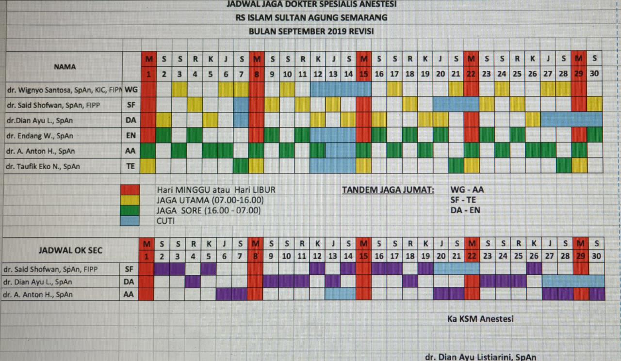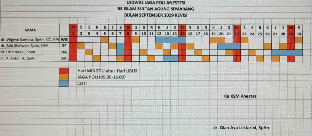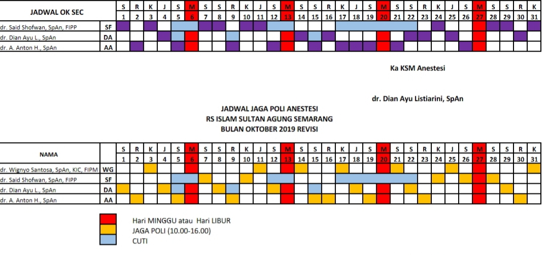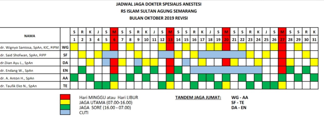 JADWAL JAGA DOKTER SPESIALIS ANESTESI